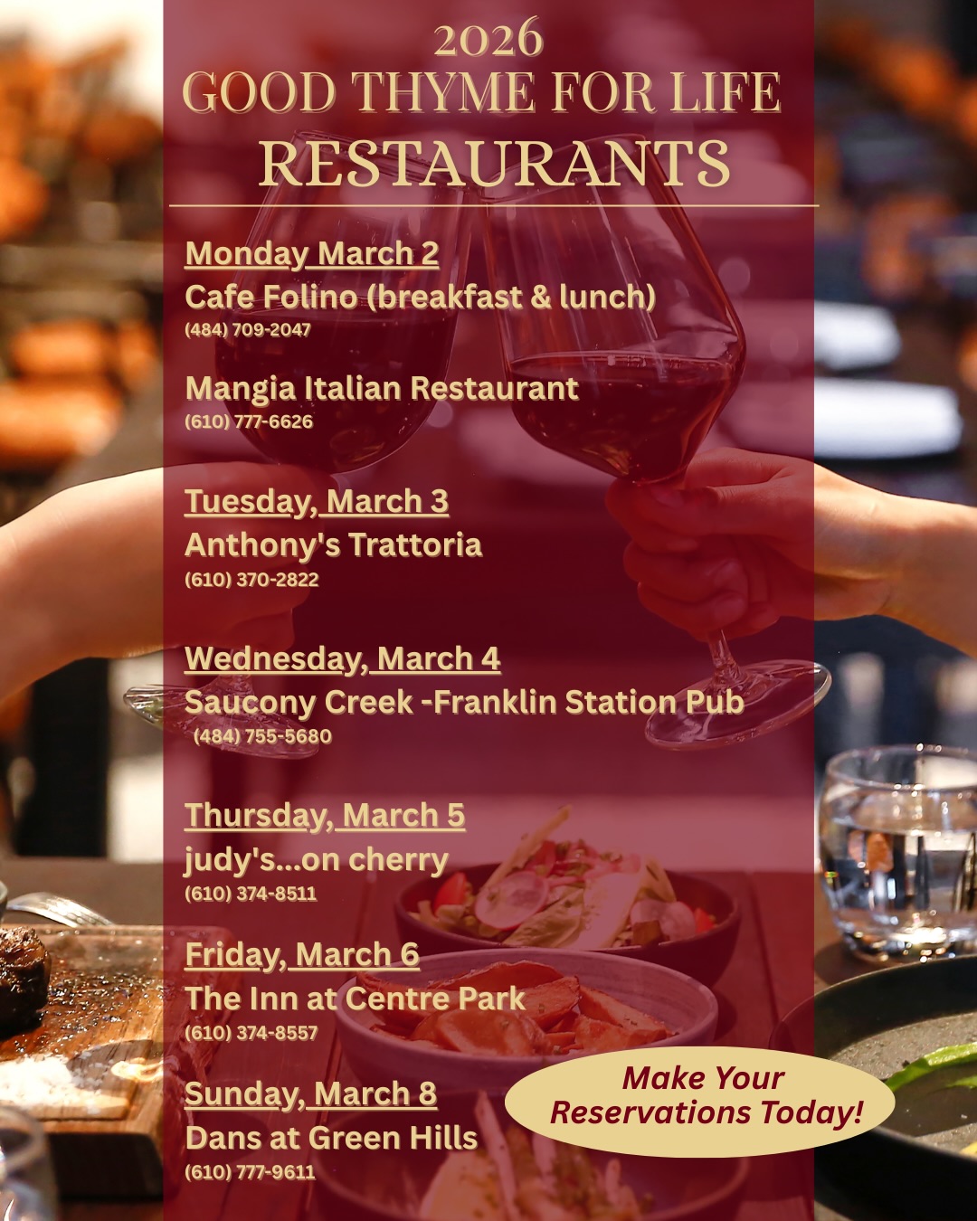 « All Events This event has passed. A Good Thyme For Life 2026 March 2 - March 8 « A Sophisticated Palette 2025 Add to calendar Google Calendar iCalendar Outlook 365 Outlook Live Details Start: March 2 End: March 8 Event Category: Special Events Website: www.goodthymeforlife.org Venue berks county Organizer Co County Wellness Services Phone 610-375-6523 Email ban1@cocounty.org View Organizer Website